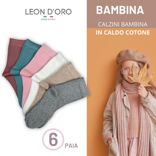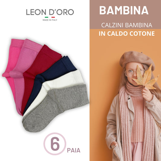 Calze Bambina in Cotone, Calzini Ragazza per Scuola Tempo Libero in caldo cotone 6 Paia Made in Italy ASSF