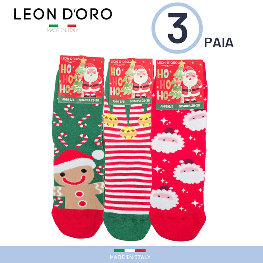Calzini Antiscivolo Bambino Natale Cotone 3 Paia Calze Bimba Made in Italy ASS3