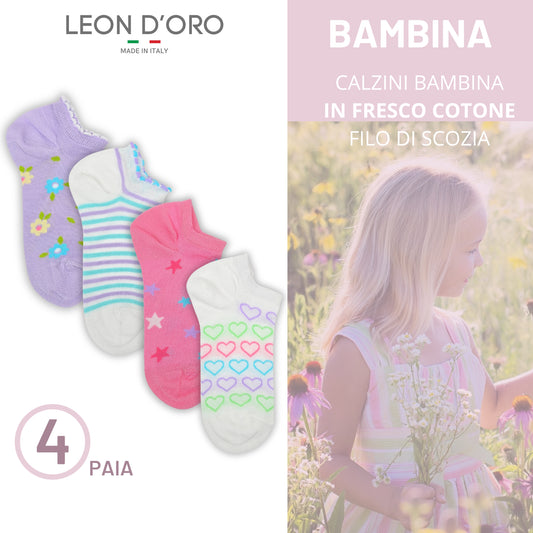 Calzini Fantasmini Bambina Cotone Filo di Scozia 4 Paia Calze leggere e traspiranti Made in Italy ASS1