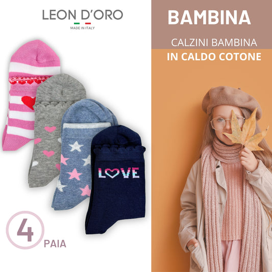 Calzini Bambina Caldo Cotone 4 Paia Calze Bimba Calze Bambina invernali Made in Italy ASS1