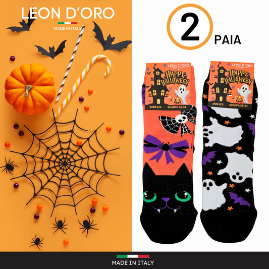 Calzini Halloween Bambina Antiscivolo Cotone 2 Paia Calze Bimba abs scuola casa gonfiabili, Made in Italy HALLOF