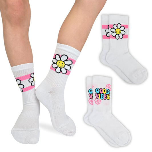 Calze Sportive Bambina 2 Paia Calzettoni Ragazza Tennis, Basket, Skateboard, Atletica, Calzini Made in Italy