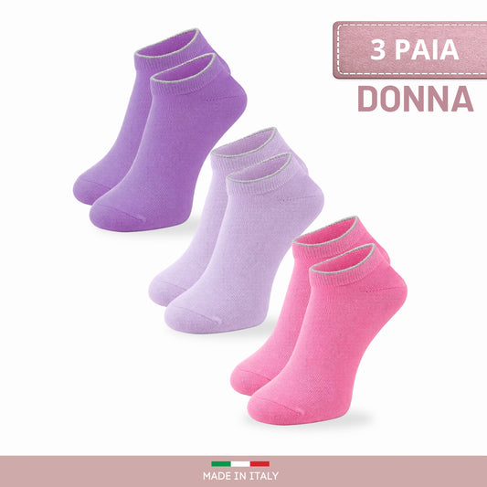 Calzini Donna COTONE LEGGERO corto Calze Donna FILO DI SCOZIA Sneaker Fantasmini Donna Made in Italy PINK