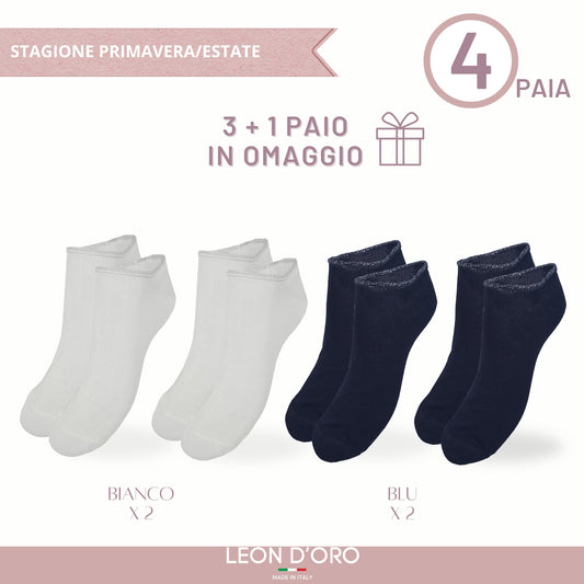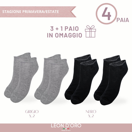 Calzini Donna COTONE LEGGERO FILO DI SCOZIA 4 Paia, di cui 1 in Omaggio Calze Donna Made in Italy ASS4