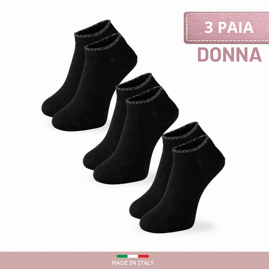 Calzini Donna COTONE LEGGERO corto Calze Donna FILO DI SCOZIA Sneaker Fantasmini Donna Made in Italy NERO