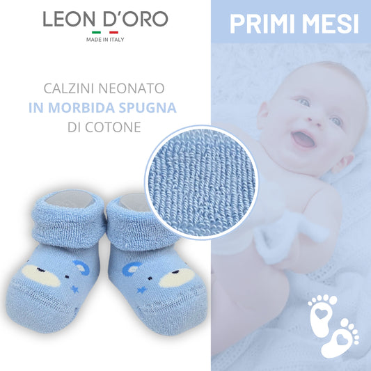 Calze Neonato Calzino Regalo Baby Shower Scarpine Babbucce bambini Primi Mesi Taglia Unica Made in Italy Azzurro