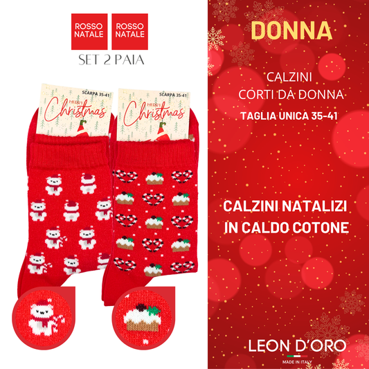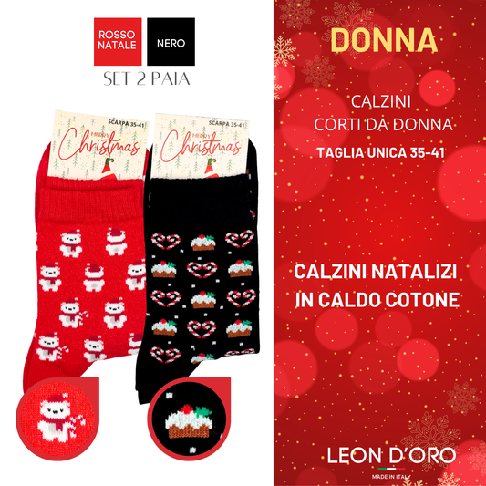 Calzini Donna Caldo Cotone, Calzino Donna Natale, Calze corte Donna Natalizi con scatola Regalo Made in Italy ASS2