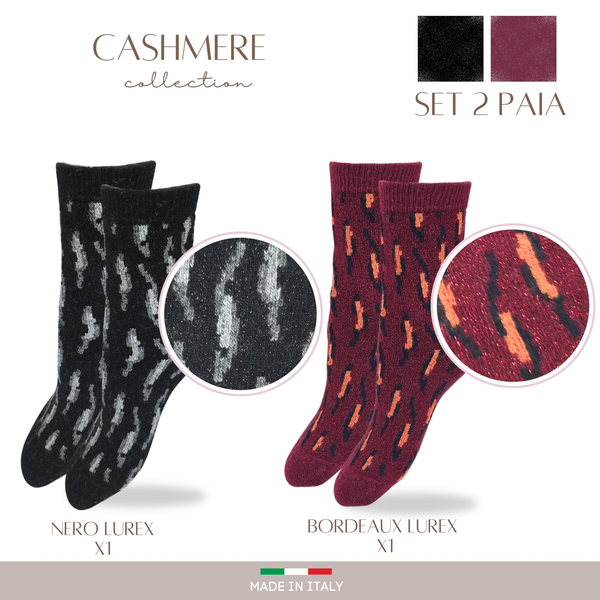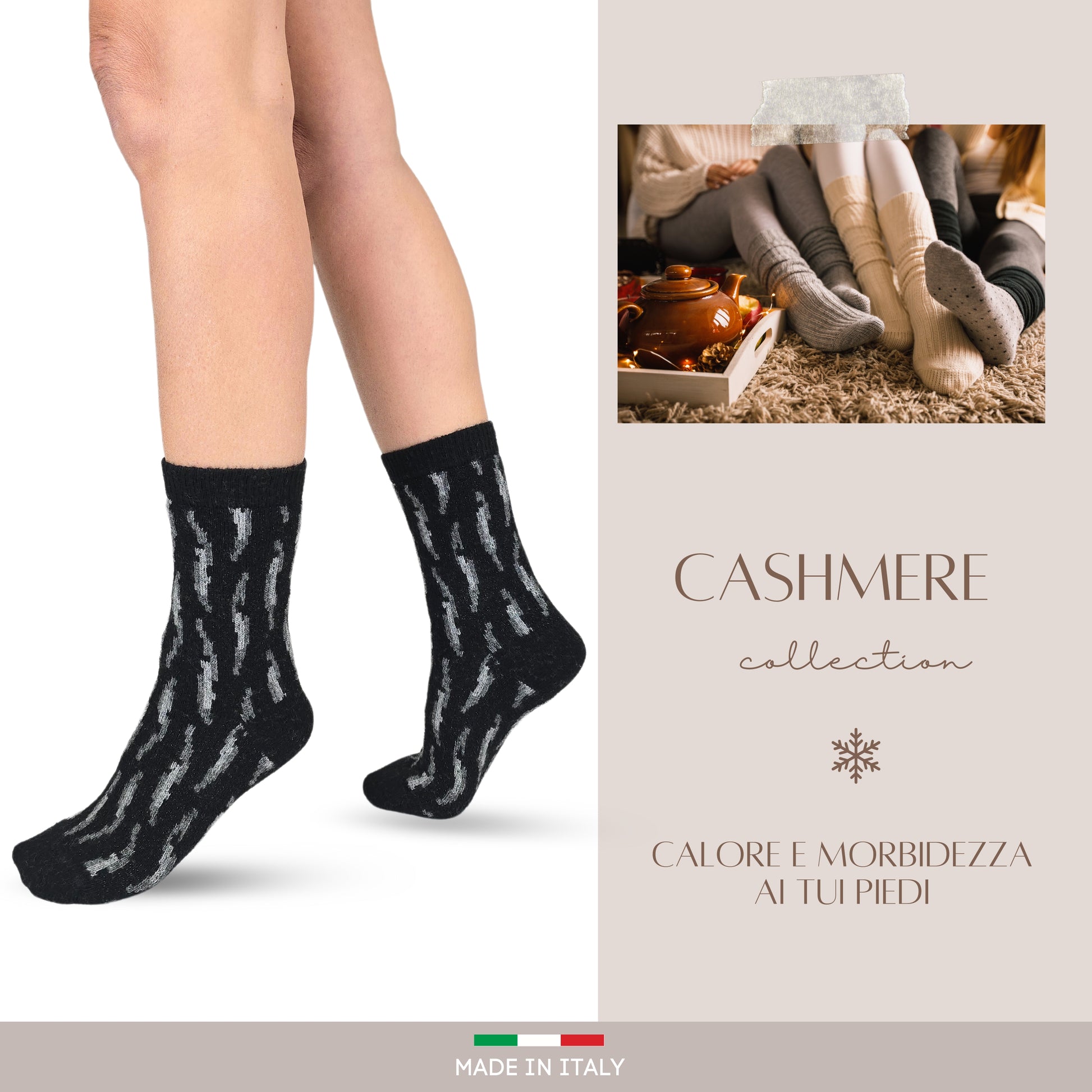 Calze Cashmere Donna Calzini Lana e Cachemire con Lurex Termici Invernali Made in Italy LUREX ASS1