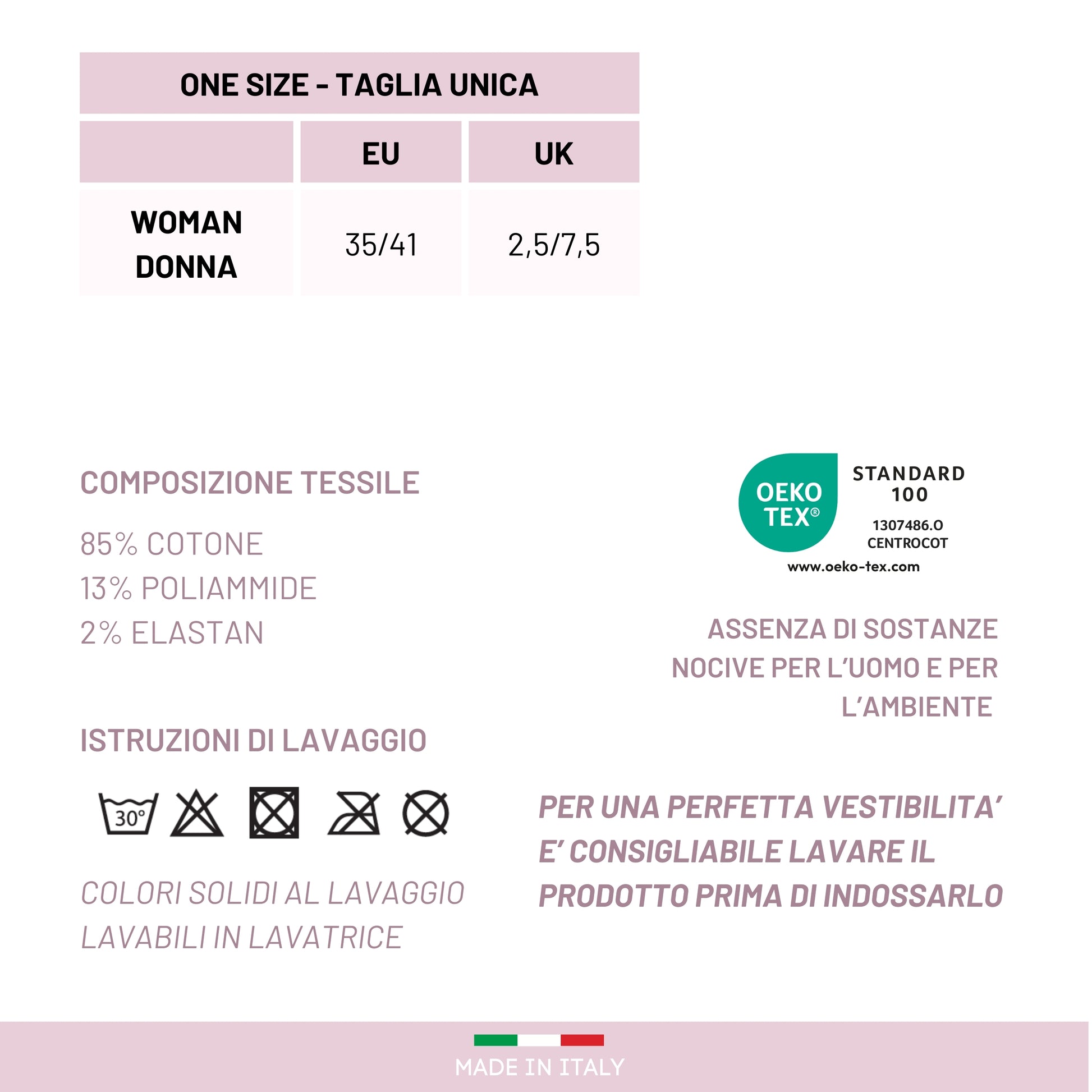 Calze donna Sanitarie : Calzini corti per diabete e piedi sensibili in caldo cotone senza elastico e cucitura piatta in punta. Il comfort e la resistenza del cotone all'umidità sono consigliati per chi ha una cattiva circolazione e tende ad avere problemi e traumi. Il nostro calzino sanitario garantisce una vestibilità comoda e un piacevole comfort per tutto il giorno. NON STRIGE NON SEGNA NON SCIVOLA. Particolarità: Non ostacola la circolazione sanguigna nei piedi, Non segna in caviglia senza compressione e senza bordo elastico, Cuciture piatte per conferire comfort senza sfregamenti o irritazioni. Adatti per chi soffre di diabete, piede d'atleta, per piedi sensibili, ma anche per chi desidera avere piedi sempre sani e curati, Adatti in tutte le stagioni. Composizione: 75% COTONE 23% POLIAMMIDE 2% ELASTAN, Caldo Cotone, filati di altissima qualità. Calze Super Comfort non stringono non sfregano, ideali per tutti i giorni. Le calze sanitarie Leon D'oro sono adatte per il lavoro, per la sera ed anche per il tempo libero.I Calzini Leon D'oro ti garantiscono la qualità che cercavi. Lavabilità: LAVARE LA CALZA PRIMA DELL'UTILIZZO per ottenere la vestibilità perfetta così facendo il tessuto ha il rientro dato dal lavaggio e la calza non si presenta più lunga. Le calze sanitarie per diabetici le puoi lavare a 40° hanno un' asciugatura rapida. Ti consigliamo per il mantenimento della qualità di non mettere in asciugatrice, non candeggiare, non lavare a secco e non stirare. Per una corretta conservazione del prodotto segui le nostre indicazioni." Il vero Made in Italy: Tutto il processo di creazione dei nostri calzini neonato viene svolto interamente in Italia, utilizzando materiali e filati di altissima qualità e 100% Made in Italy, in condizioni ottimali di pulizia e igiene. Lasciati conquistare dai nostri calzini e non te ne pentirai! PRODUTTORE : C&Ld srl Indirizzo: Via Papa Roncalli 21/23 25022-Borgo San Giacomo - Brescia - Italia Tel : +39- 030/948390 Emal: leondoro.ecommerce@gmail.com RESPONSABILE GPRS : ESTE E." Consigli : Cambiare i calzini una o più volte al giorno. MORBIDO E BEN TOLLERABILE DALLA PELLE, ADATTO AI DIABETICI Le nostre calze sanitarie per diabetici sono con cucitura in punta piatta, senza elastico ma bordo Comfort.. Assicurata funzionalità venosa Un'alta percentuale di cotone garantisce inoltre un piacevole clima del piede e un elevato comfort.