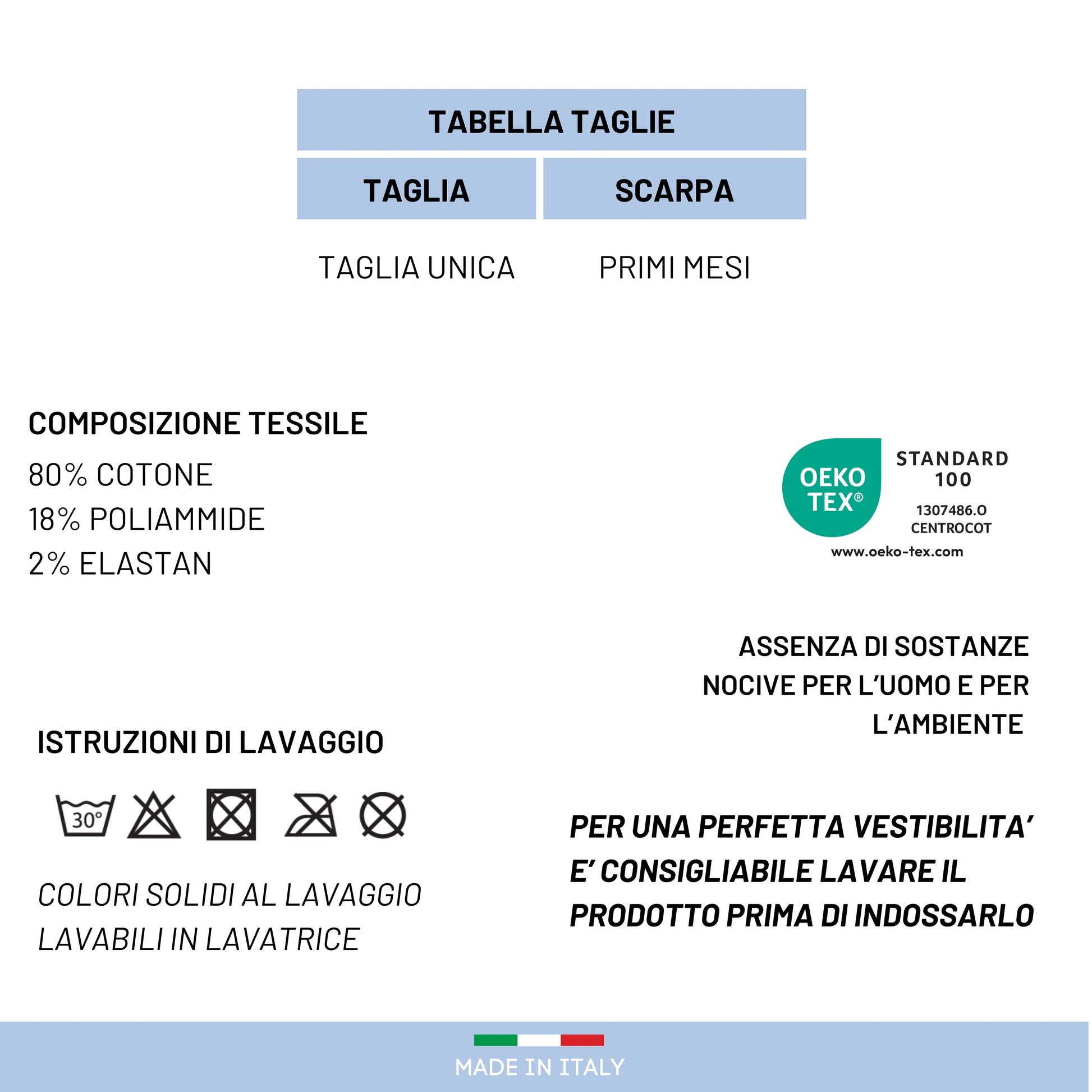 - Il vero Made in Italy: Tutto il processo di creazione dei nostri calzini neonato viene svolto interamente in Italia, utilizzando materiali e filati di altissima qualità e 100% Made in Italy, in condizioni ottimali di pulizia e igene. Lasciati conquistare dai nostri calzini e non te ne pentirai!