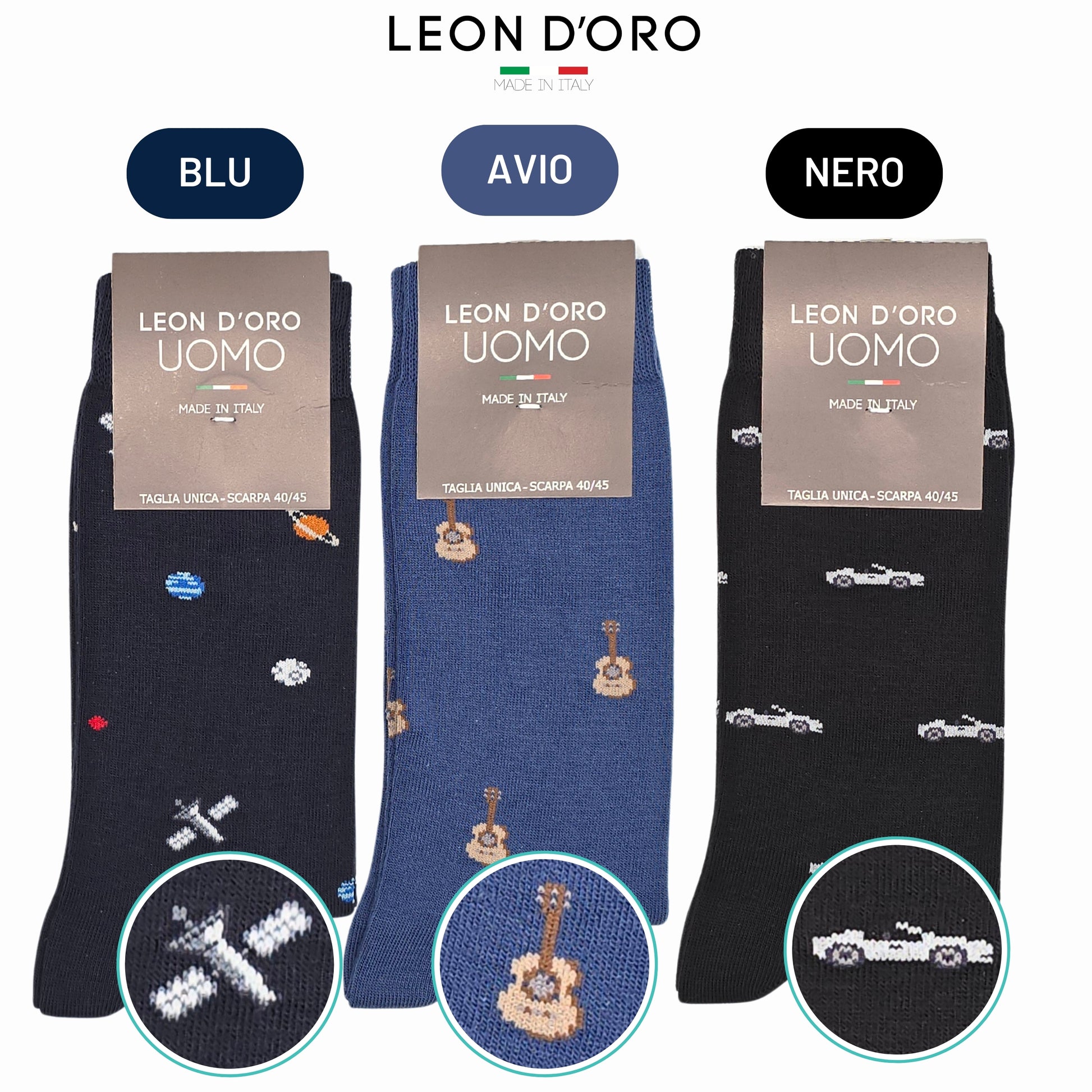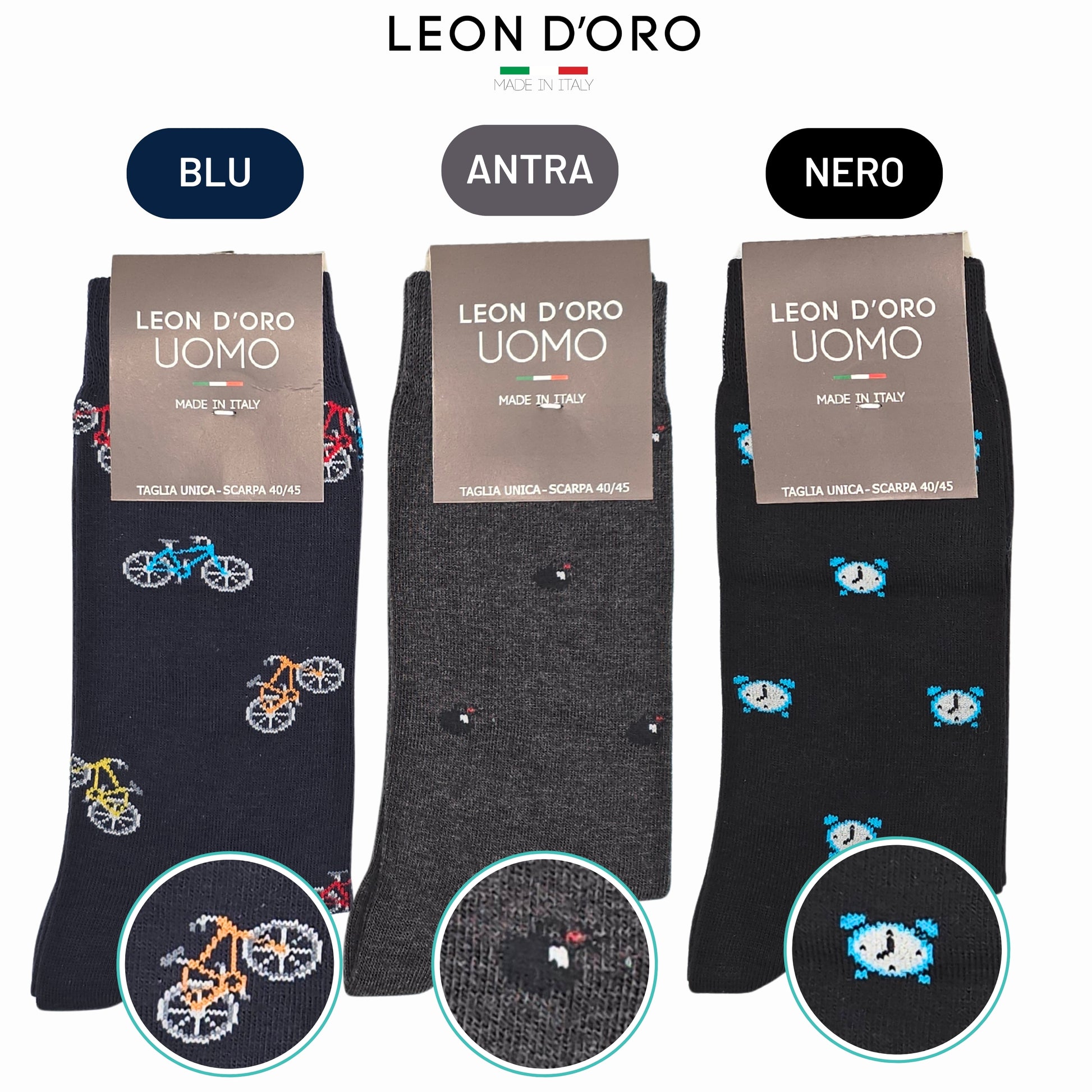 Calze Uomo Fantasia : Calzini Uomo corti in caldo cotone cucitura piatta in punta. Il comfort e la resistenza del cotone all'umidità sono consigliati per tutto il giorno, il piede rimane asciutto. Le nostre calze uomo garantiscono una vestibilità comoda e un piacevole comfort per tutto il giorno. Calzini ideali per le stagioni fredde. NON STRIGE NON SEGNA NON SCIVOLA. Particolarità: Calze Corte invernali alla moda, Le nostre calze caldo cotone sono ideali per il tuo look sofisticato e alla moda. Adatti per tutti, per chi desidera avere ai piedi la differenza. Il dettaglio di una calza fantasia è per intenditori che voglionio distinguersi. Le Calze Uomo Leon D'oro mantengono il piede caldo e asciutto. Composizione: 85% cotone 13% poliammide 2%elastan caldo cotone, filati di altissima qualità. Calze Super Comfort non stringono non sfregano, ideali per tutti i giorni. Le calze uomo cotone fantasia Leon D'oro sono adatte per il lavoro, per la sera ed anche per il tempo libero. I Calzini Leon D'oro ti garantiscono la qualità che cercavi. Lavabilità: LAVARE LA CALZA PRIMA DELL'UTILIZZO per ottenere la vestibilità perfetta così facendo il tessuto ha il rientro dato dal lavaggio e la calza non si presenta più lunga. Le calze cotone uomo moda le puoi lavare a 40° hanno un' asciugatura rapida. Ti consigliamo per il mantenimento della qualità di non mettere in asciugatrice, non candeggiare, non lavare a secco e non stirare. Per una corretta conservazione del prodotto segui le nostre indicazioni." Il vero Made in Italy: Tutto il processo di creazione dei nostri calzini viene svolto interamente in Italia, utilizzando materiali e filati di altissima qualità e 100% Made in Italy, in condizioni ottimali di pulizia e igiene. Lasciati conquistare dai nostri calzini e non te ne pentirai! PRODUTTORE : C&Ld srl Indirizzo: Via Papa Roncalli 21/23 25022-Borgo San Giacomo - Brescia - Italia Tel : +39- 030/948390 Emal: leondoro.ecommerce@gmail.com RESPONSABILE GPRS : ESTE E." Consigli : MORBIDO E BEN TOLLERABILE DALLA PELLE, ADATTO PER UN LOOK SOFISTICATO. Le nostre calze uomo cotone fantasia sono con cucitura in punta piatta, elastico morbido. Il cotone garantisce inoltre un piacevole clima del piede e un elevato comfort. |