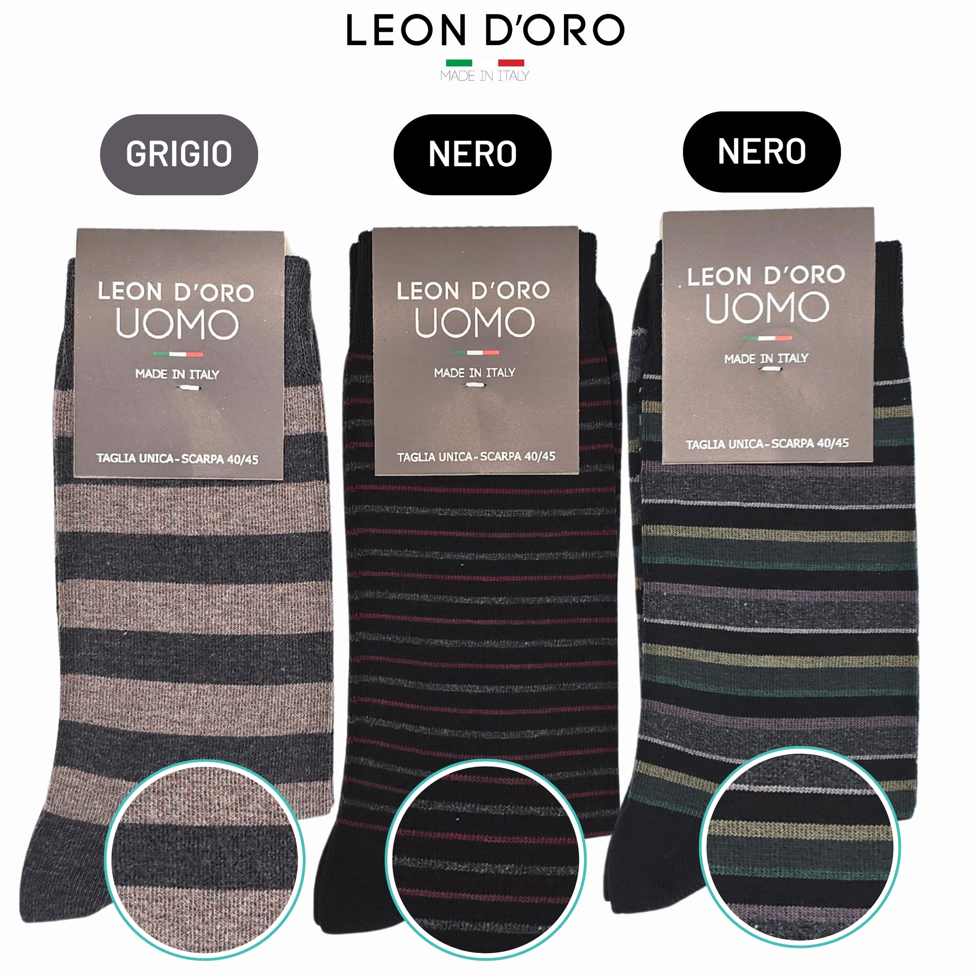 Calze Uomo Fantasia : Calzini Uomo corti in caldo cotone cucitura piatta in punta. Il comfort e la resistenza del cotone all'umidità sono consigliati per tutto il giorno, il piede rimane asciutto. Le nostre calze uomo garantiscono una vestibilità comoda e un piacevole comfort per tutto il giorno. Calzini ideali per le stagioni fredde. NON STRIGE NON SEGNA NON SCIVOLA. Particolarità: Calze Corte invernali alla moda, Le nostre calze caldo cotone sono ideali per il tuo look sofisticato e alla moda. Adatti per tutti, per chi desidera avere ai piedi la differenza. Il dettaglio di una calza fantasia è per intenditori che voglionio distinguersi. Le Calze Uomo Leon D'oro mantengono il piede caldo e asciutto. Composizione: 85% cotone 13% poliammide 2%elastan caldo cotone, filati di altissima qualità. Calze Super Comfort non stringono non sfregano, ideali per tutti i giorni. Le calze uomo cotone fantasia Leon D'oro sono adatte per il lavoro, per la sera ed anche per il tempo libero. I Calzini Leon D'oro ti garantiscono la qualità che cercavi. Lavabilità: LAVARE LA CALZA PRIMA DELL'UTILIZZO per ottenere la vestibilità perfetta così facendo il tessuto ha il rientro dato dal lavaggio e la calza non si presenta più lunga. Le calze cotone uomo moda le puoi lavare a 40° hanno un' asciugatura rapida. Ti consigliamo per il mantenimento della qualità di non mettere in asciugatrice, non candeggiare, non lavare a secco e non stirare. Per una corretta conservazione del prodotto segui le nostre indicazioni." Il vero Made in Italy: Tutto il processo di creazione dei nostri calzini viene svolto interamente in Italia, utilizzando materiali e filati di altissima qualità e 100% Made in Italy, in condizioni ottimali di pulizia e igiene. Lasciati conquistare dai nostri calzini e non te ne pentirai! PRODUTTORE : C&Ld srl Indirizzo: Via Papa Roncalli 21/23 25022-Borgo San Giacomo - Brescia - Italia Tel : +39- 030/948390 Emal: leondoro.ecommerce@gmail.com RESPONSABILE GPRS : ESTE E." Consigli : MORBIDO E BEN TOLLERABILE DALLA PELLE, ADATTO PER UN LOOK SOFISTICATO. Le nostre calze uomo cotone fantasia sono con cucitura in punta piatta, elastico morbido. Il cotone garantisce inoltre un piacevole clima del piede e un elevato comfort. |