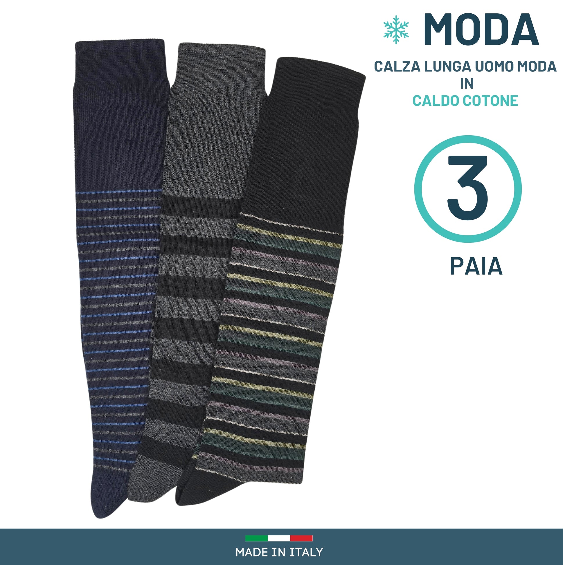 Calze Uomo Caldo Cotone Lunghe 3 Paia calze uomo invernali Fantasia calze Moda Made in Italy RIGA 3