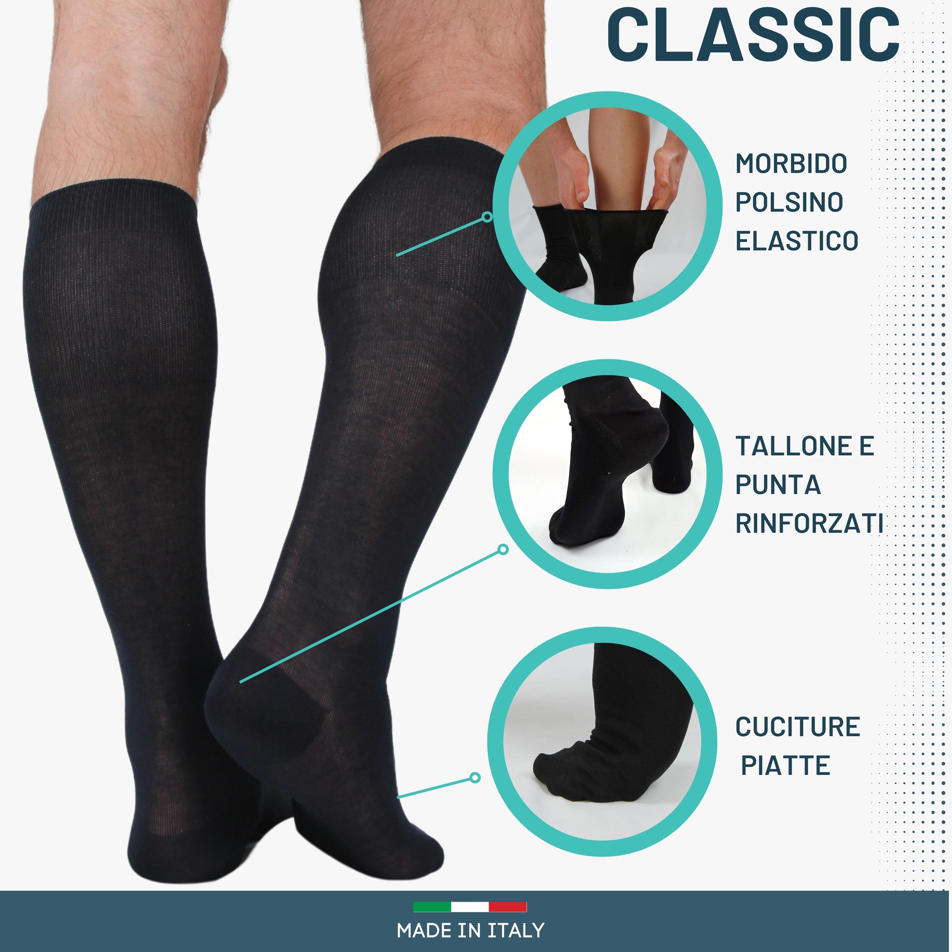 Calze Uomo Cotone Lunghe Liscio 6 Paia Calze Uomo Filo di Scozia Made in Italy Calzini Lunghi