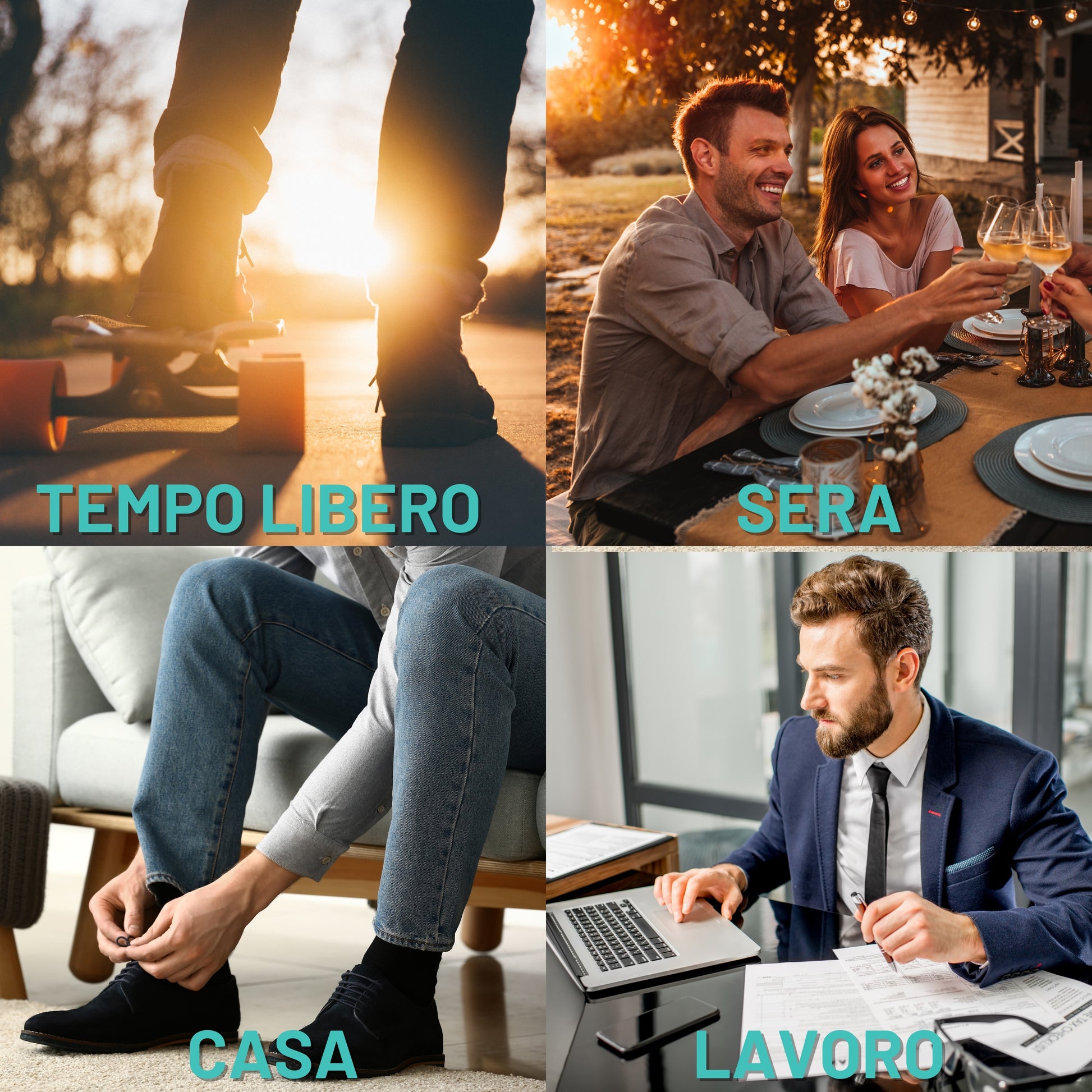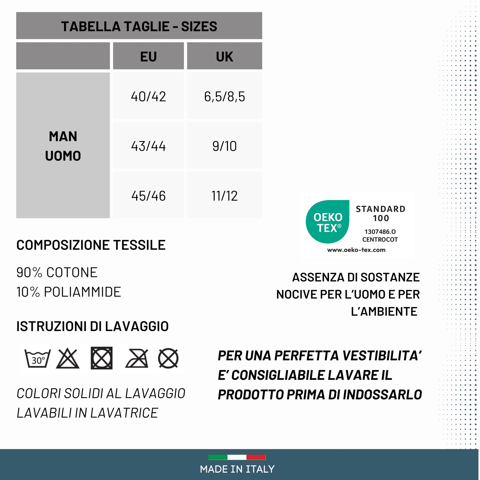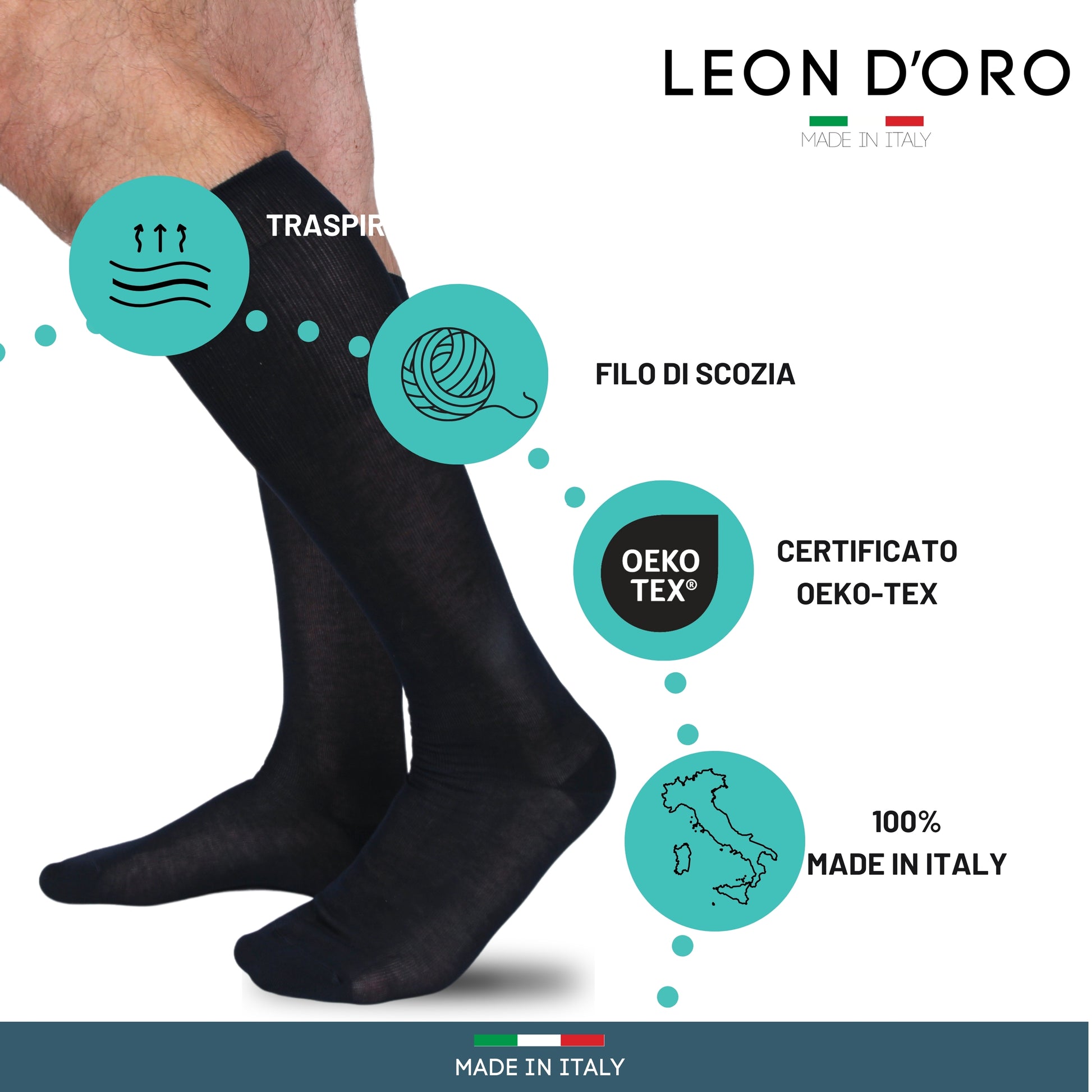 Calze Uomo Lisce: Calzini Uomo Lunghi in cotone filo di scozia cucitura piatta in punta. Il comfort e la resistenza del cotone all'umidità sono consigliati per tutto il giorno, il piede rimane asciutto. Le nostre calze uomo garantiscono una vestibilità comoda e un piacevole comfort per tutto il giorno.NON STRIGE NON SEGNA NON SCIVOLA. Particolarità: Calze Uomo Lunghe estive alla moda, Le nostre calze filo di scozia sono ideali per il tuo look sofisticato e alla moda. Adatti per tutti, per chi desidera avere ai piedi la differenza. Il dettaglio di una calza Leon D'oro è per intenditori che voglionio distinguersi. Adatti in tutte le stagioni. Composizione: 90% cotone 10% poliammide fresco cotone filo di scozia,filati di altissima qualità. Calze Super Comfort non stringono non sfregano, ideali per tutti i giorni. Le calze uomo cotone Leon D'oro sono adatte per il lavoro, per la sera ed anche per il tempo libero.I Calzini Leon D'oro ti garantiscono la qualità che cercavi. Lavabilità': LAVARE LA CALZA PRIMA DELL'UTILIZZO per ottenere la vestibilità perfetta così facendo il tessuto ha il rientro dato dal lavaggio e la calza non si presenta più lunga. Le calze cotone uomo moda le puoi lavare a 40° hanno un' asciugatura rapida. Ti consigliamo per il mantenimento della qualità di non mettere in asciugatrice, non candeggiare, non lavare a secco e non stirare. Per una corretta conservazione del prodotto segui le nostre indicazioni. Il Vero Made in Italy: Tutto il processo di creazione delle nostre calze uomo, calze donna cotone viene svolto interamente in Italia, utilizzando materiali e filati di altissima qualità e 100% Made in Italy, in condizioni ottimali di pulizia e igene. Lasciati conquistare dai nostri calzini uomo e non te ne pentirai! Consigli : MORBIDO E BEN TOLLERABILE DALLA PELLE, ADATTO PER UN LOOK SOFISTICATO. Le nostre calze uomo cotone sono con cucitura in punta piatta, elastico morbido, punta tallone rinforzato. Il cotone garantisce inoltre un piacevole clima del piede e un elevato comfort.