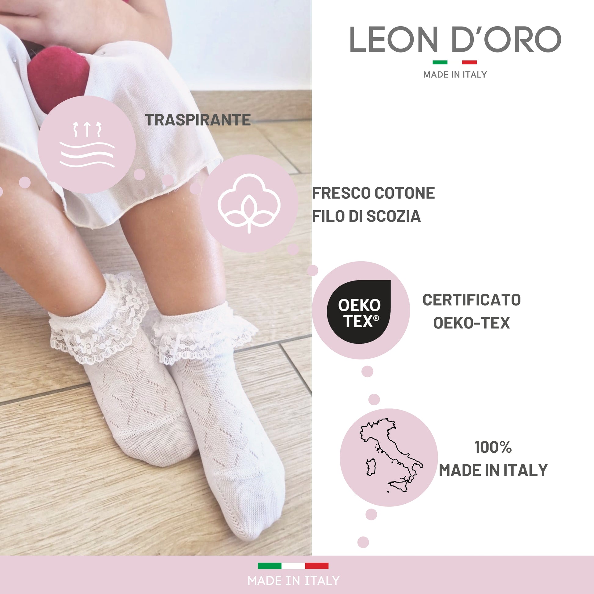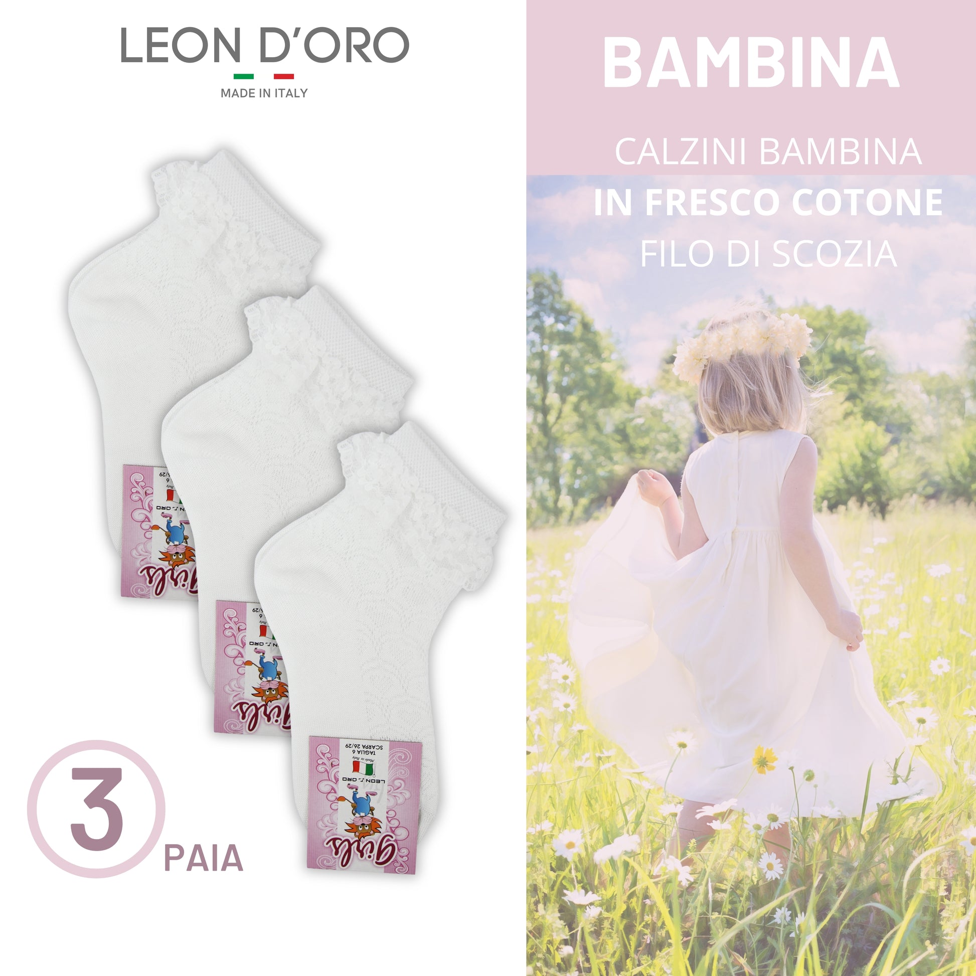 Calzini Bambina Cotone 3 Paia con Pizzo Calze Bimba Fantasmini Bambina Made in Italy