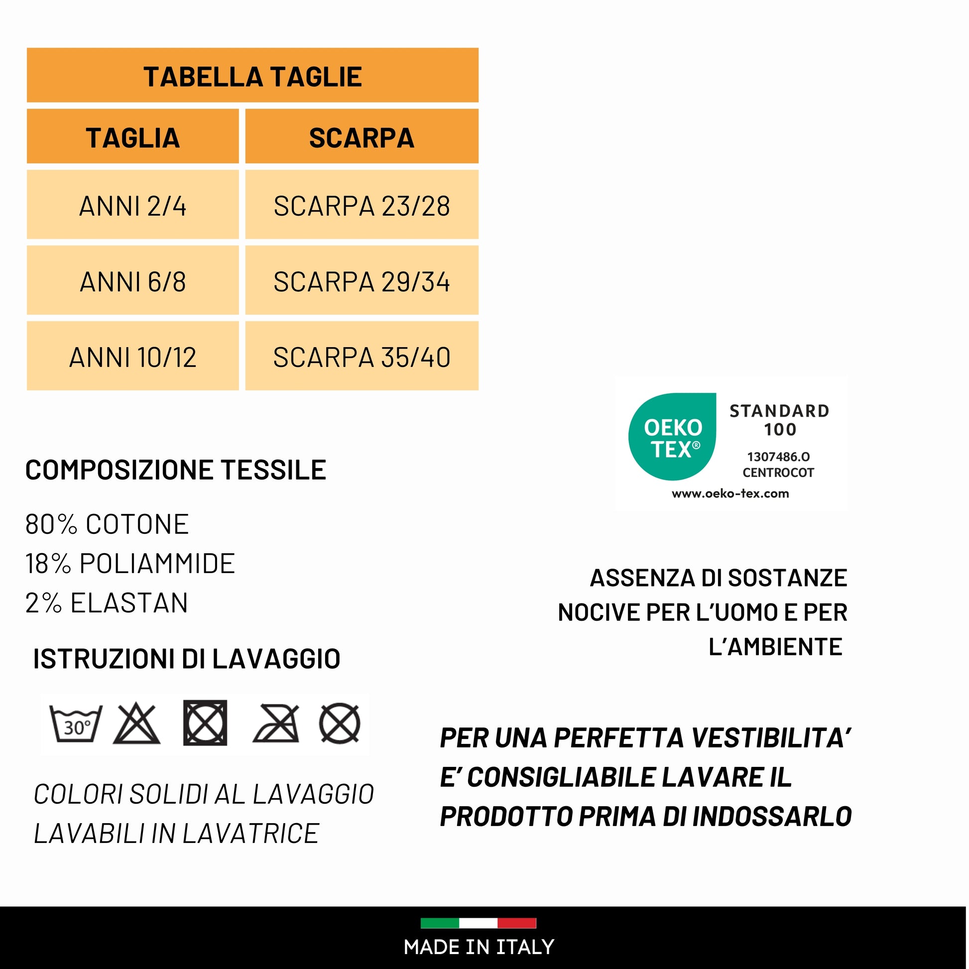 Composizione: 80% cotone 18% poliammide 2% elastan fresco cotone spugna, filati di altissima qualità. Calze Super Comfort non stringono non sfregano, ideali per tutti i giorni. Le calze cotone Bambina fantasia Leon D'oro sono adatte per la casa, per l'asilo ed anche per il tempo libero. I Calzini Bambina Leon D'oro ti garantiscono la qualità che cercavi.