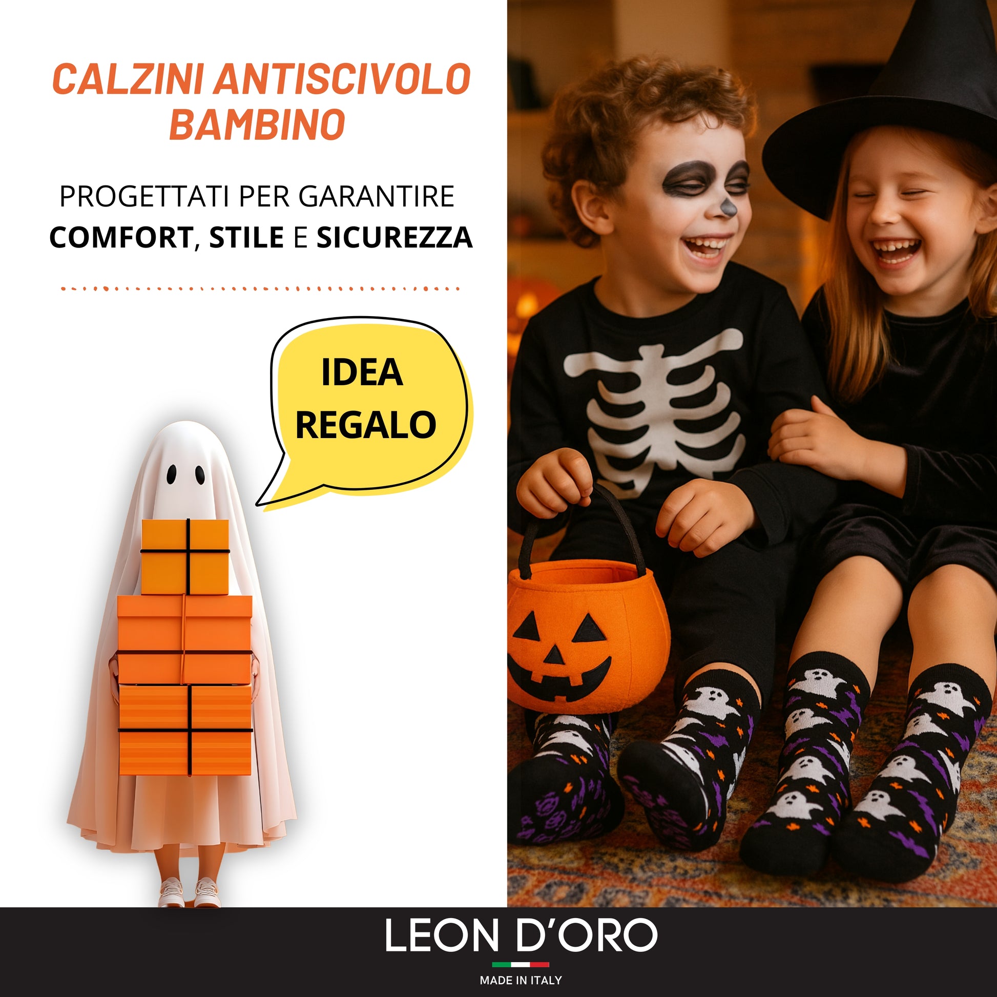 Calzini Halloween Bambina Antiscivolo Cotone 2 Paia Calze Bimba abs scuola casa gonfiabili, Made in Italy HALLOF