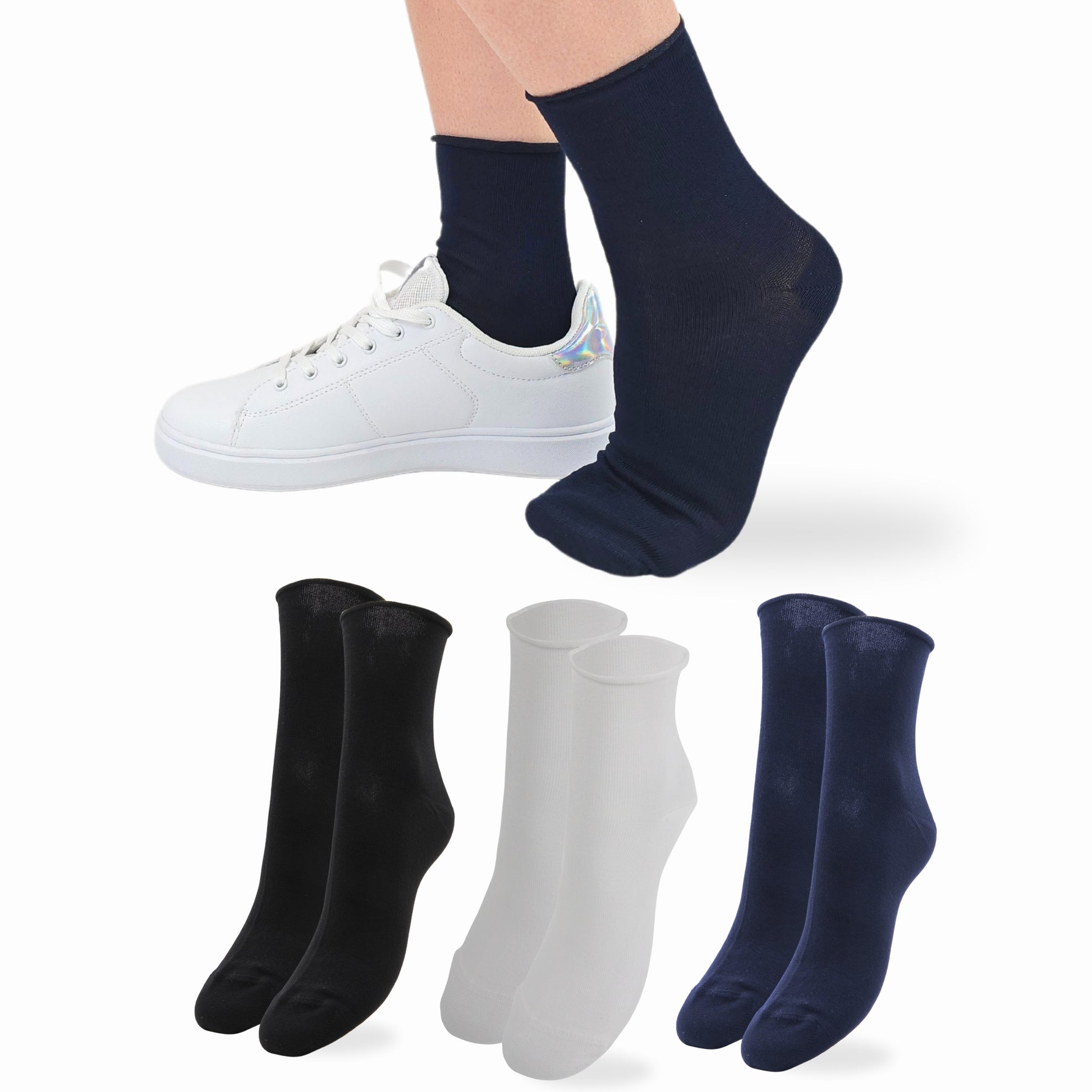 - Calzini Donna Cotone: Calzini corti cotone filo di scozia senza elastico e cucitura piatta in punta. Il comfort e la resistenza del cotone all'umidità sono consigliati per tutta la giornata e per tutti gli outfit. Il nostro calzino senza elastico garantisce una vestibilità comoda e un piacevole comfort per tutto il giorno.