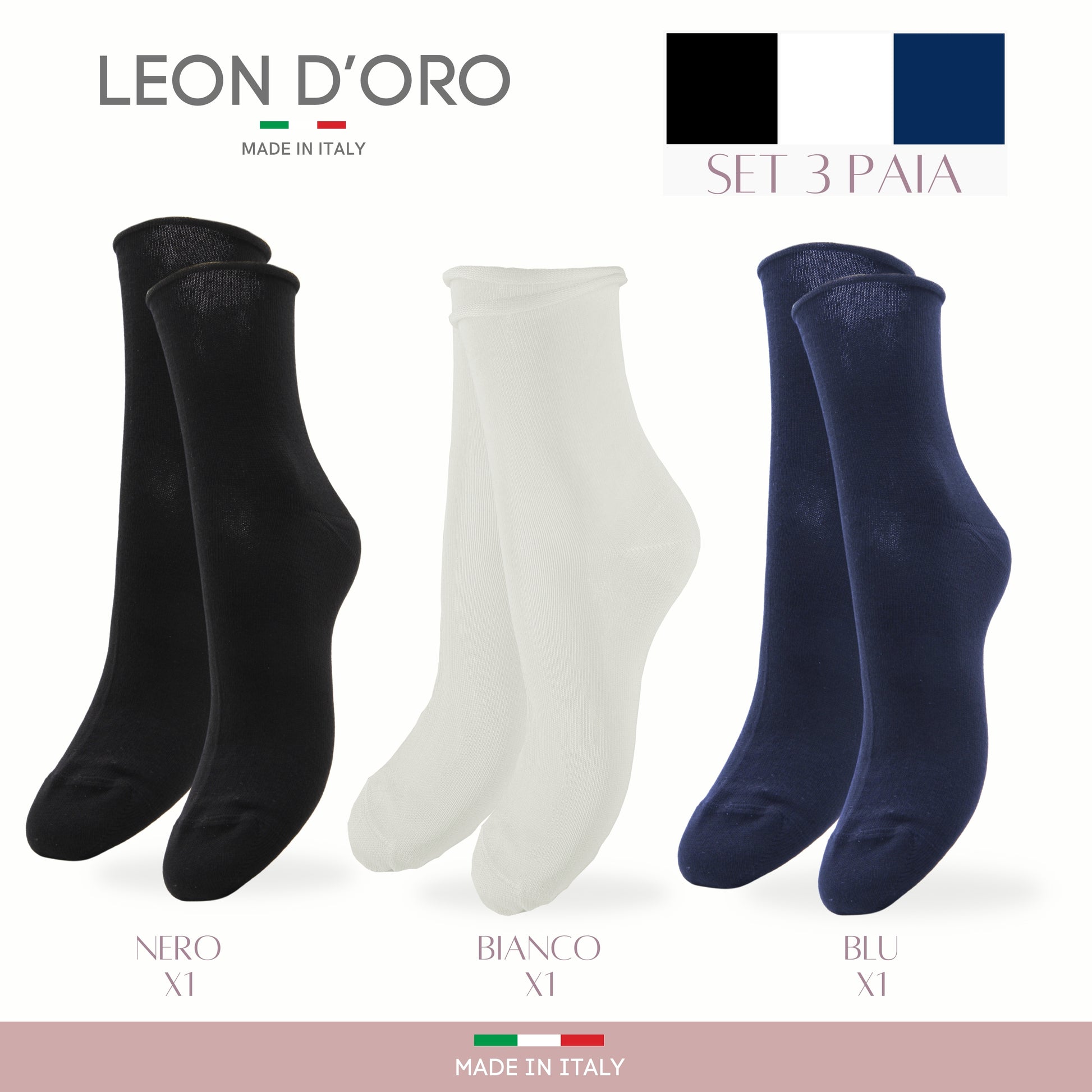 Calzini Senza Elastico Donna Cotone Leggero 3 Paia Calze Donna Filo di scozia Made in Italy CLASSIC
